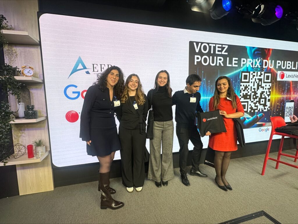 Le Prix du Public LexisNexis a lui été remporté par l’équipe SMART MUTUELLE (Ombeline Dupouy, Mathis Amato, Tobias Faber, Lauryn Bruni et Margot Chakoub) qui a présenté une solution d’analyse des contrats de mutuelle de start-uppers non-salariés.
