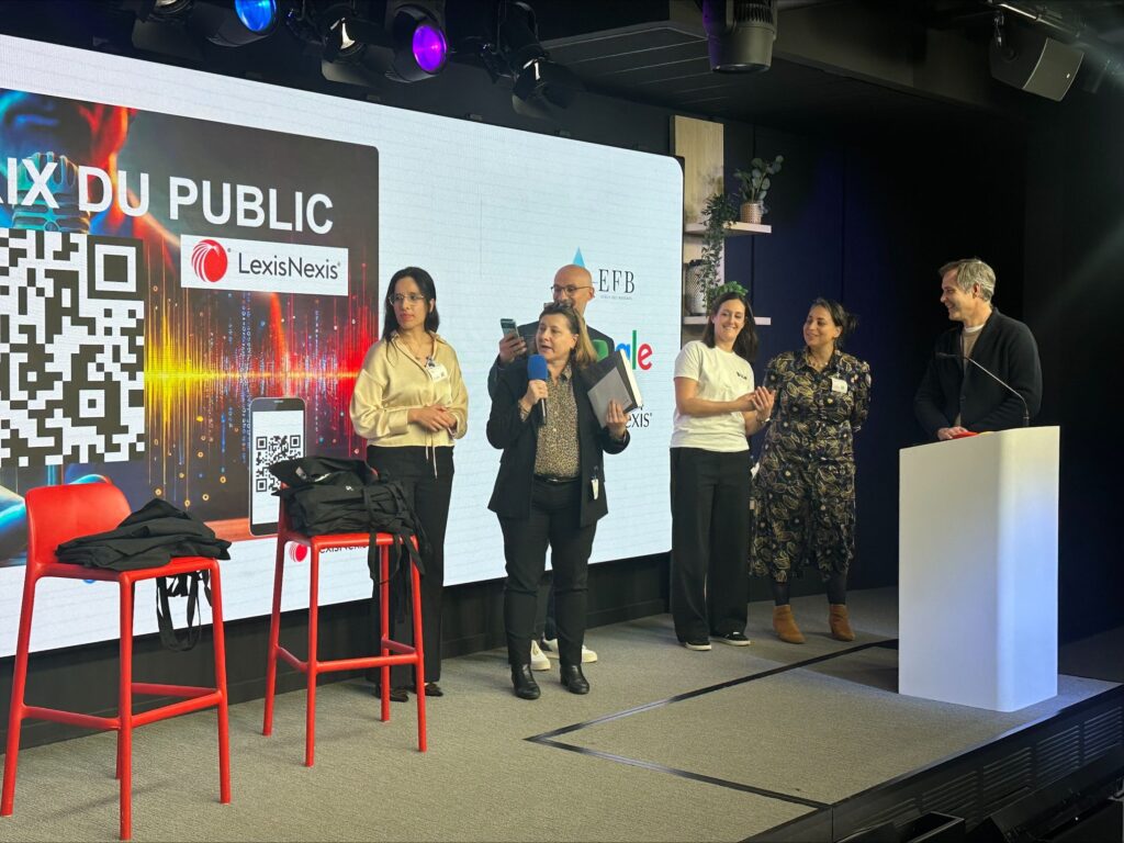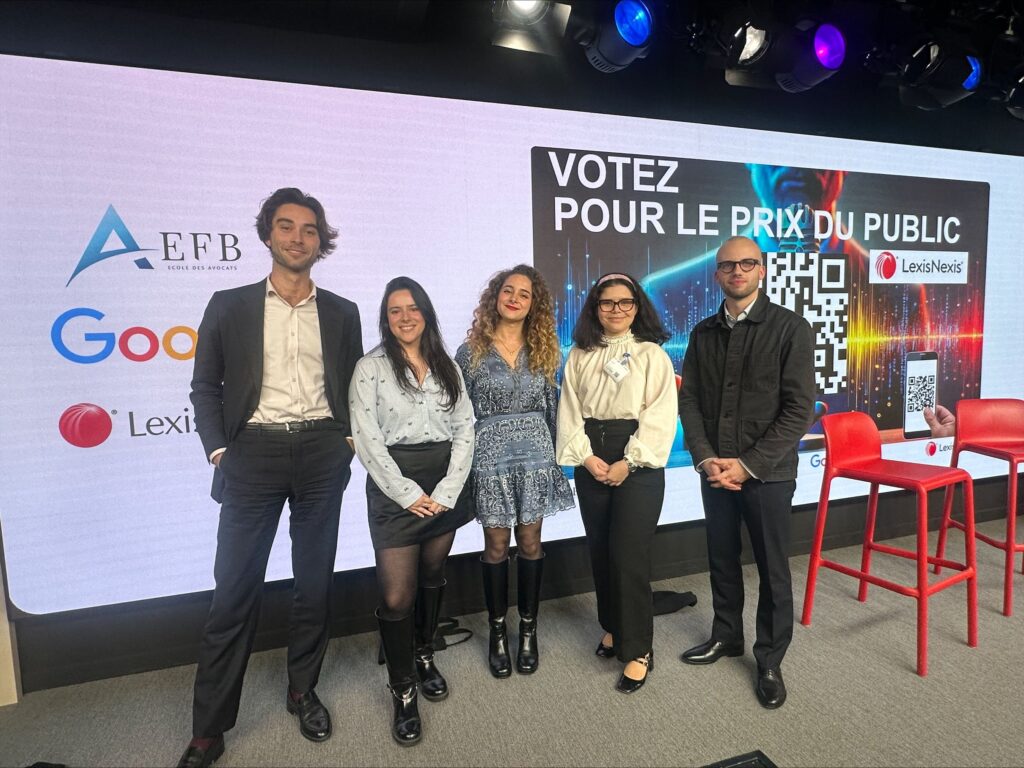 Cinq équipes d’élèves avocats du Lab EFB ont présenté leurs projets devant le jury composé de : Chrystel Faure – Directrice du développement marché secteur public et académique chez LexisNexis France, Sophie Julien – Directrice de l’observatoire du Conseil national des barreaux, Xavier Polidoro – Legal counsel chez Google, Eleonore Zahlen – Avocate et fondateur du cabinet Bold et Salma Vasegh – Lauréate de la 9e édition du Pitch Day.